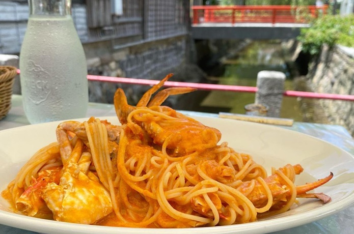おいしいピザとパスタをいただけるお店で、中でもオリーブオイルでじっくり蒸し焼きにした蟹に濃厚なトマトクリームソースをからめた「渡り蟹のトマトクリームソース」が人気。