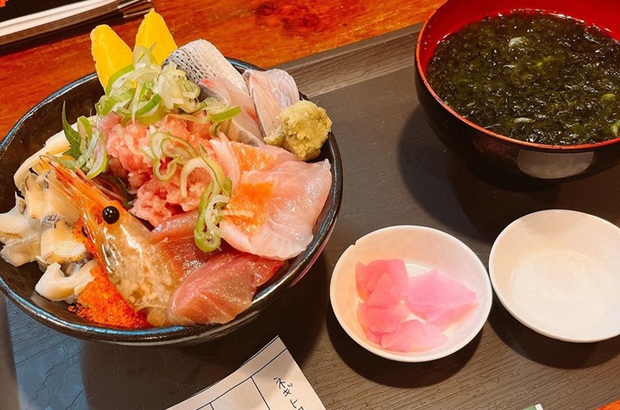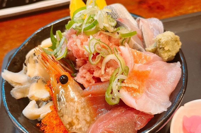 下田の美味しい海鮮と地酒をいただくなら、開国厨房なみなみがおすすめ。趣向を凝らした個性的なメニューが魅力で、「魅惑の生ウニプリン」や、下田地金目鯛と伊豆牛ローストビーフを組み合わせた「豪華なみなみ丼」など、下田の幸が詰まった逸品料理がいただけます。