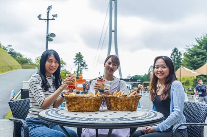 三島スカイウォークは飲食店も充実しているため、ランチ利用にもおすすめ。吊橋の手前にあるため、入場料不要で利用できます。